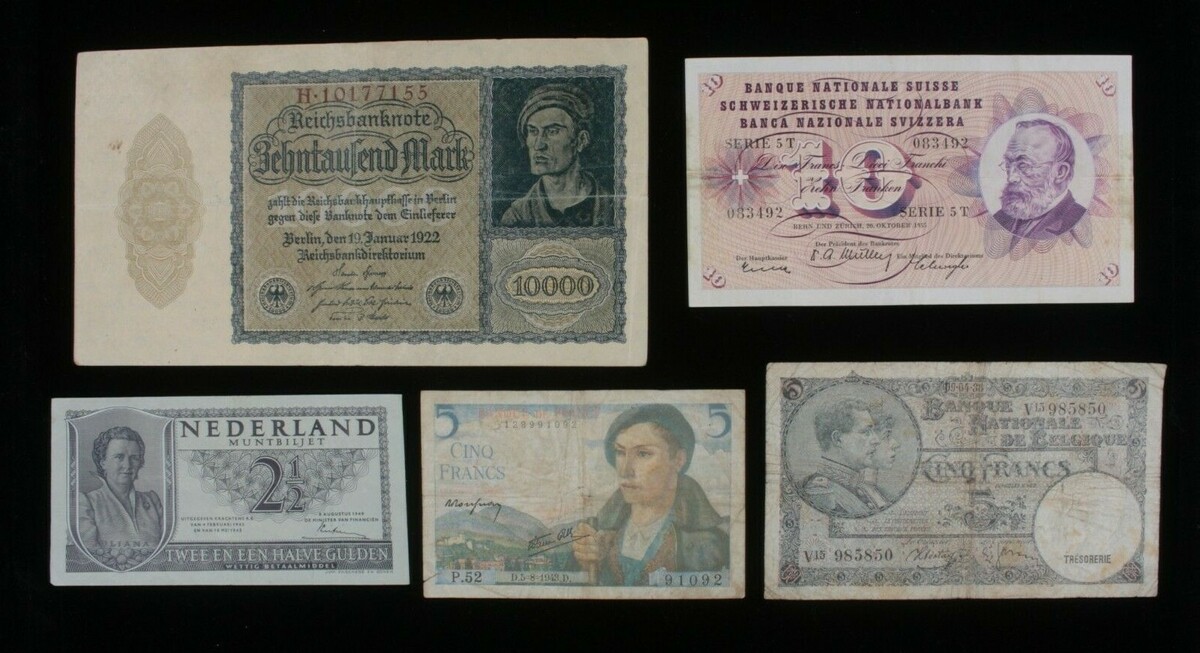 European Nations 5-Notes Lot // Belgium France Germany Netherlands Switzerland