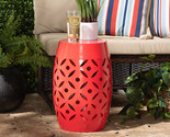 Add the finishing touch to your outdoor layout with the Evelyn side table. Made in China, this table is constructed from solid metal to serve as a durable accent piece. A geometric cut-out design on the sides of the table presents a unique, graceful display while allowing light to pass easily through its frame. The Evelyn will arrive fully assembled and utilizes a barrel shape for excellent stability. Whether used for outdoor decorations or snacks and drinks, the Evelyn side table is a lovely accent to any patio or deck.