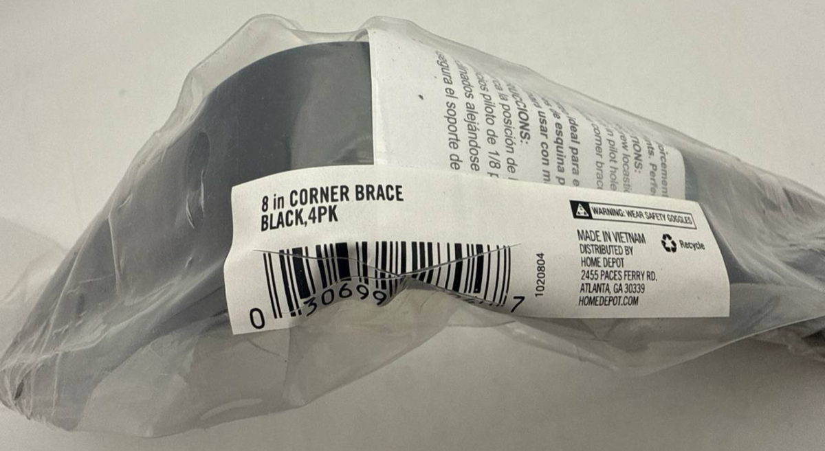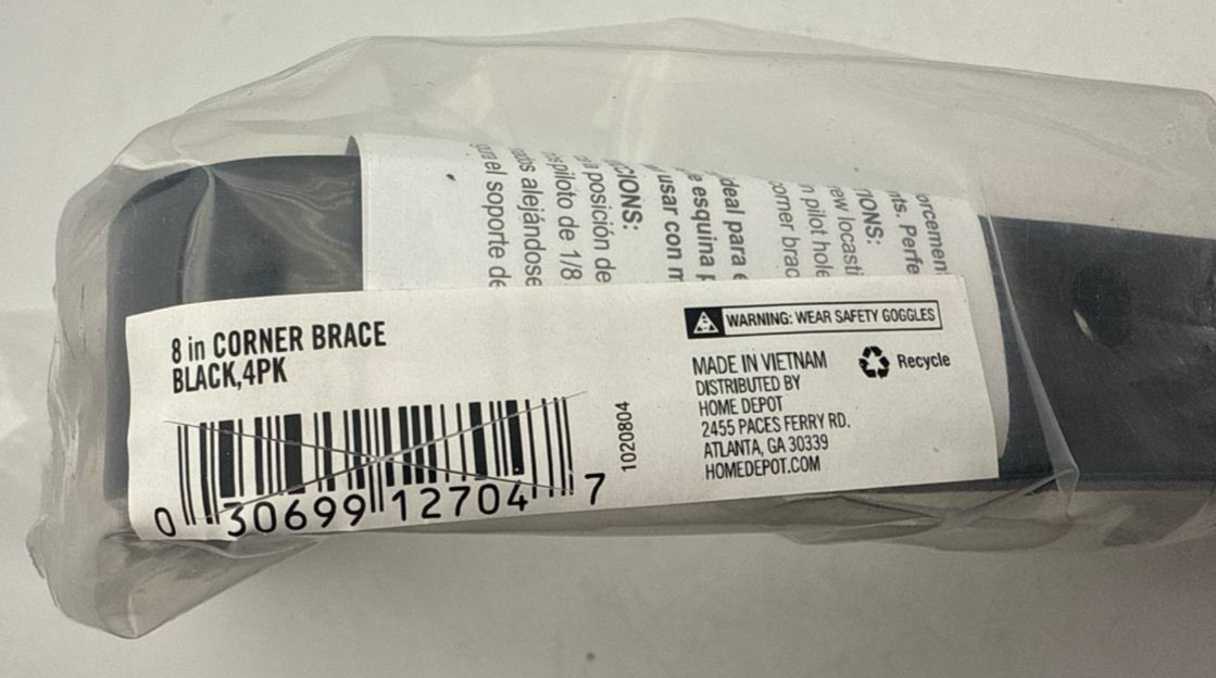 - Everbilt Corner Brace 8 in Black Steel Flat Heavy Duty Mounting Support 4 Pack