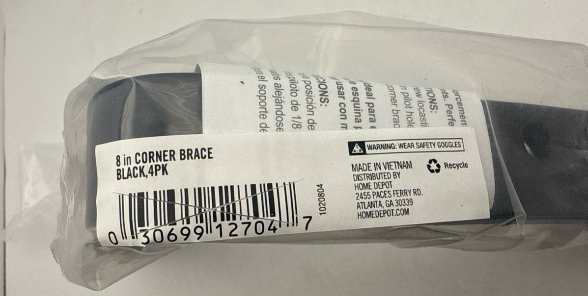 Item includes: Please note: This Pack includes 4x Everbilt Corner Brace 8 in Black Steel, 6x Screws Only ? As Pictured. No bolts, or other accessories are included.