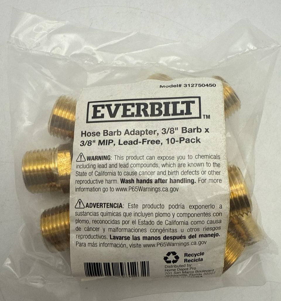 - Everbilt Hose Barb Adapter 3/8 Inch MIP Brass Fitting Connector Garden 10 Pack