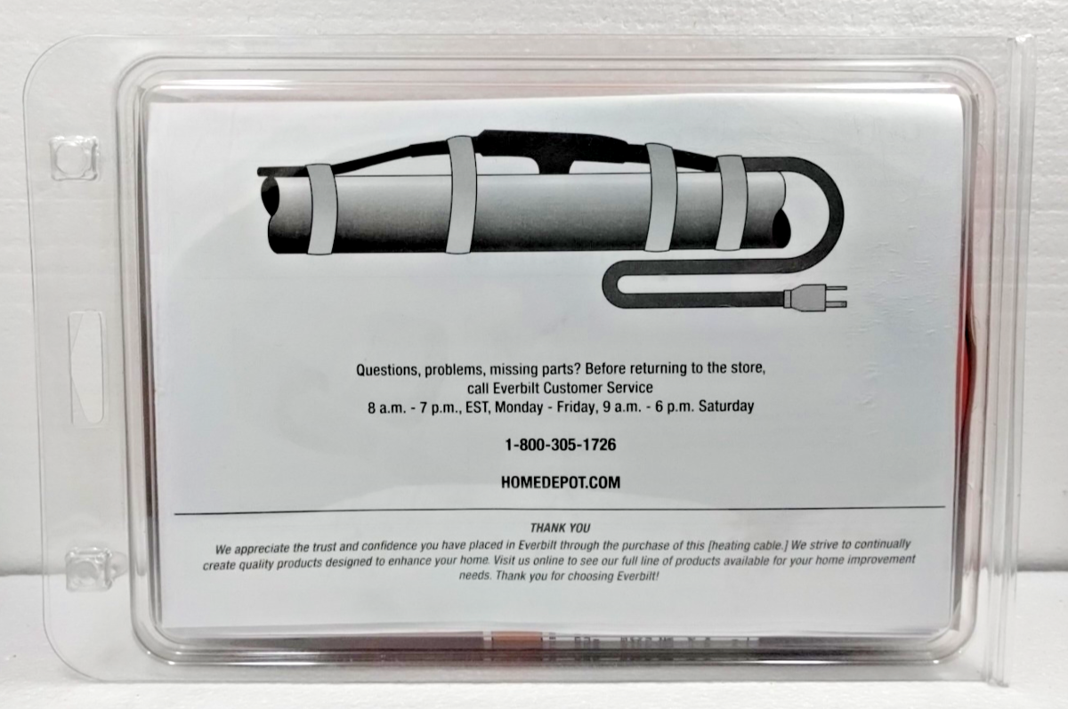 - Everbilt JHSD-84-1, 12 Ft Electric Pipe Heating Cable 84W 120V-AC