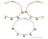 Evil Eye, Star, Snowflake, Flower, Heart Charm Bracelet w/ CZ Crystals in Sterling Silver