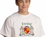 Product description: Ewing Irish Coat of Arms Tee Shirt in White. Every Irish family has a story to tell, probably hundreds of stories. Your Irish coat of arms is a visual record of your family's oldest, most significant stories. Here, they're told in bright, permanent artwork on these fine-quality, 100% cotton Gildan tee shirts. Over 25 years of heraldry research and over 1000 available Irish family coat of arms.