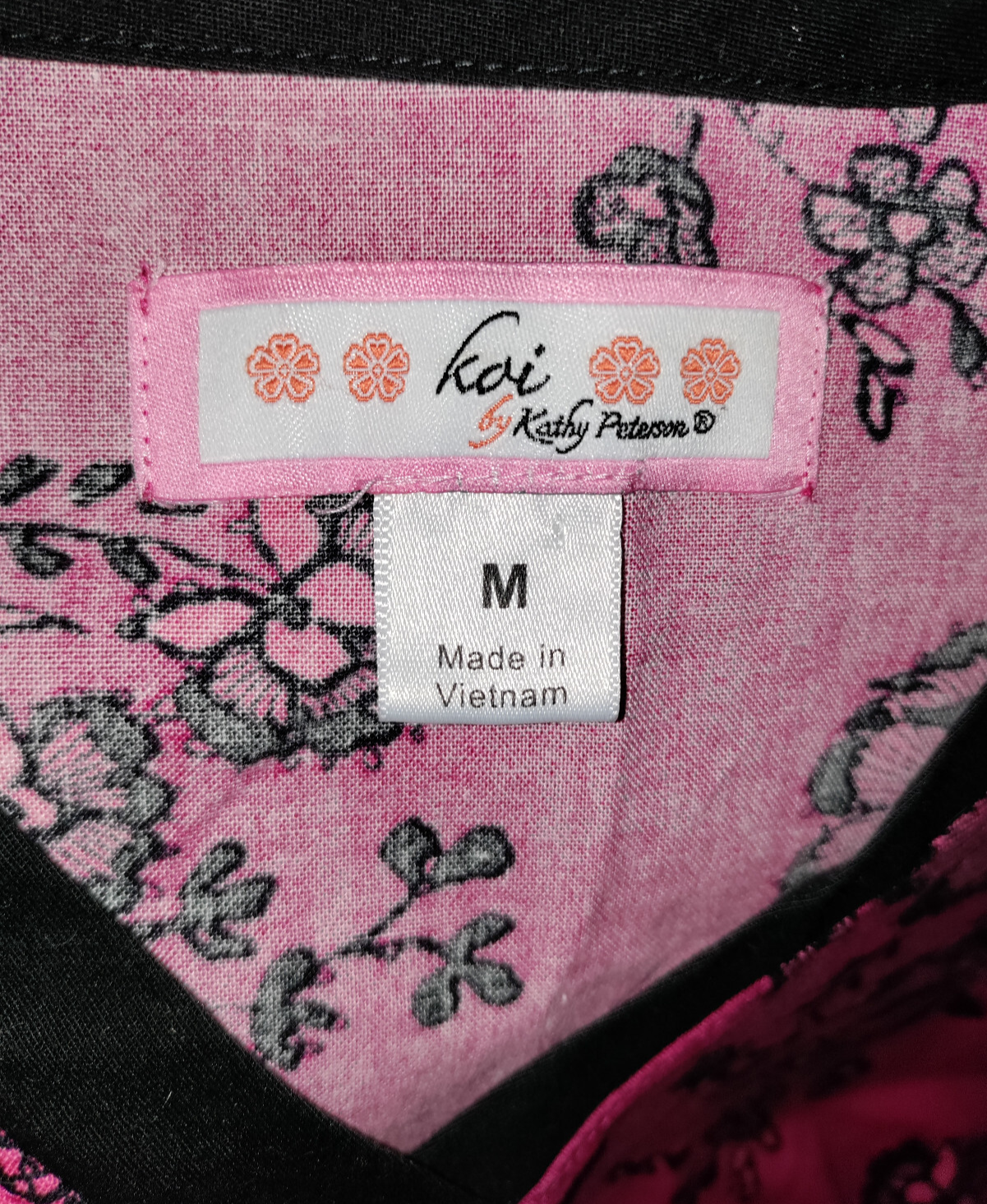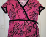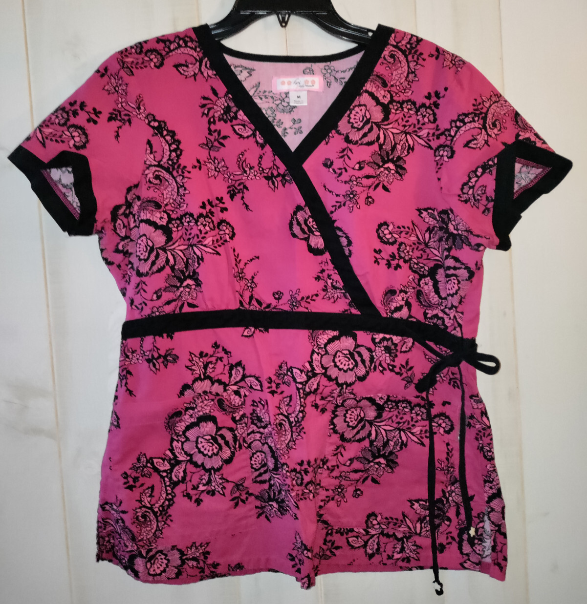 - EXCELLENT koi by Kathy Peterson BRIGHT PINK W/ PRETTY FLORAL SCRUBS TOP SIZE M