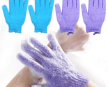 Exfoliating Bath Gloves Body Scrub Wash Mitts Skin Massage Sponge Towel Deep Cleansing Dead Skin Loofah Brush Scrub Luxury Spa Heavy with Face Care Scrubber 2 Pair (Blue Purple)