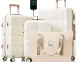 - Expandable Beige Luggage Set w/ USB & Spinner Wheels