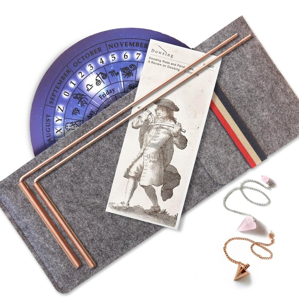 A complete dowsing kit designed for both novices and experienced users.