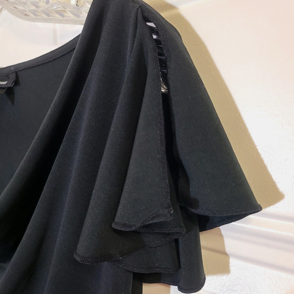 - Express Drape Neck Womens Size L Short Split Flutter Sleeves Stretch Pullover