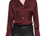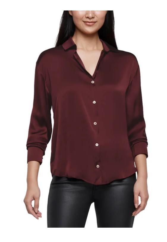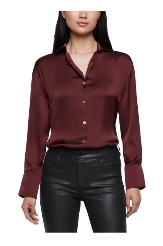 - Express Womens Shirt Dark Red Button Down Satin V-Neck Long Sleeves Relaxed Fit