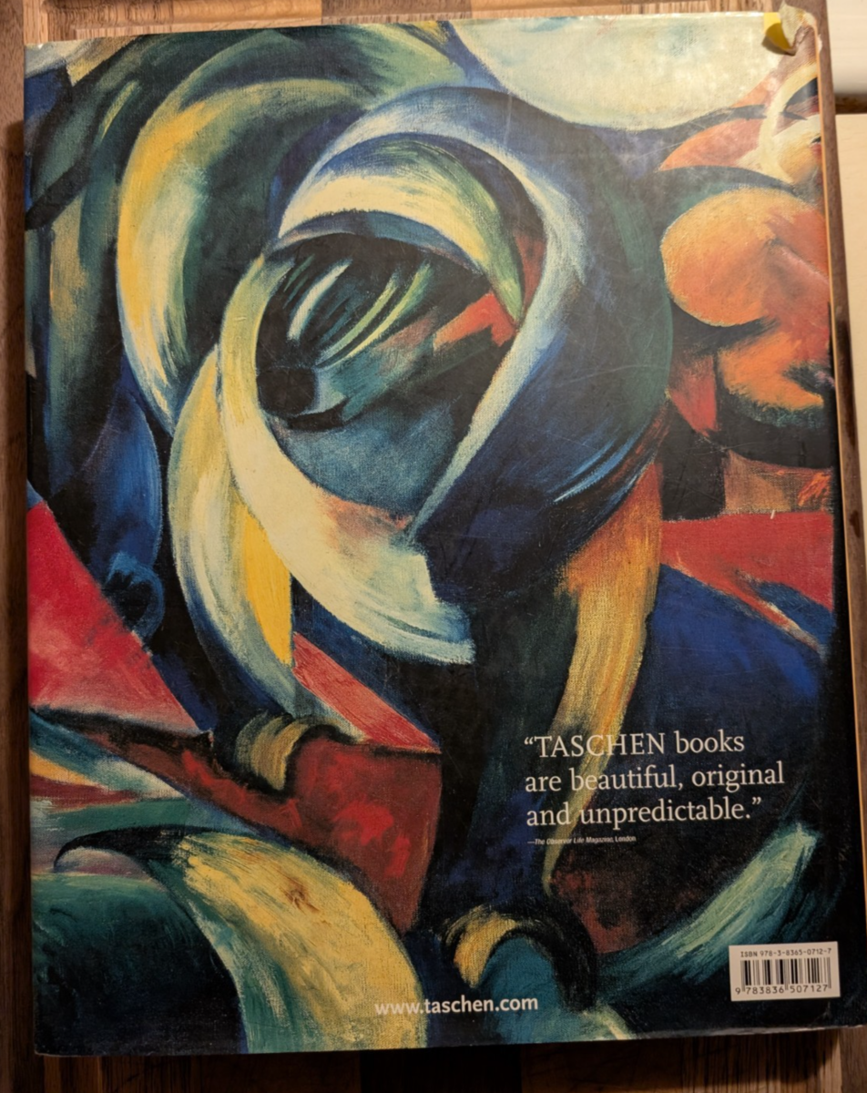 This oversized Taschen art book Expressionism by Dietmar Elger is a bold, richly illustrated guide to one of the most important movements in modern art. It?s packed with full-color plates, artist biographies, and insightful commentary featuring major Expressionist figures: Franz Marc, Kandinsky, Kirchner, Macke, Nolde, Schiele, and others.