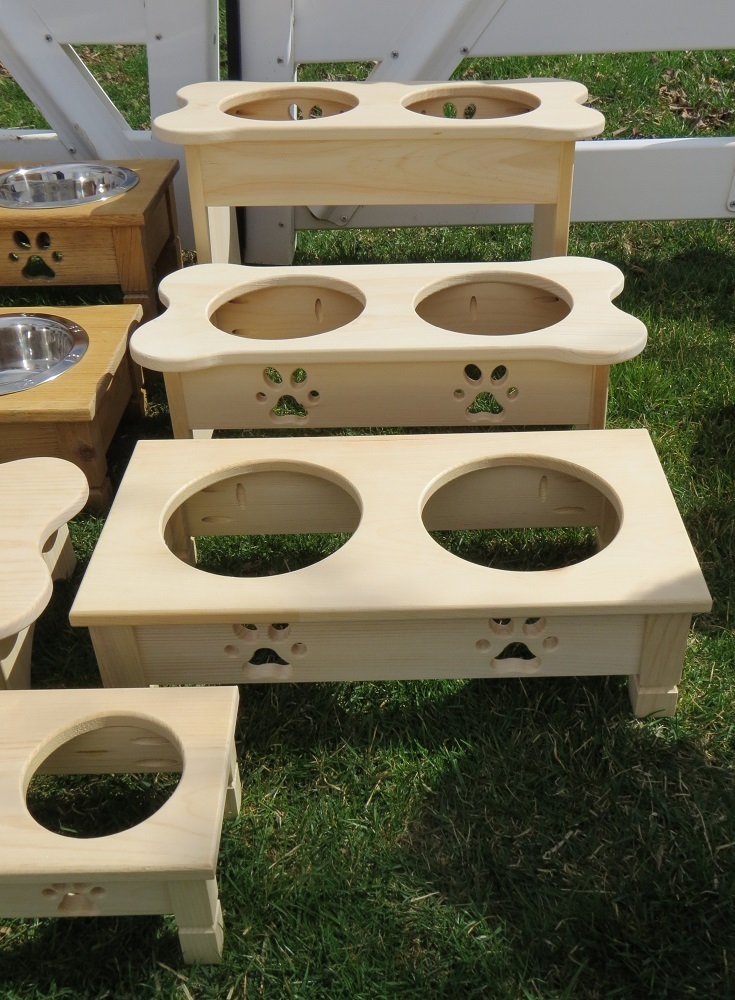 - EXTRA TALL DOG BONE FEEDER Amish Handmade Raised 2QT Paw Print Bowls UNFINISHED