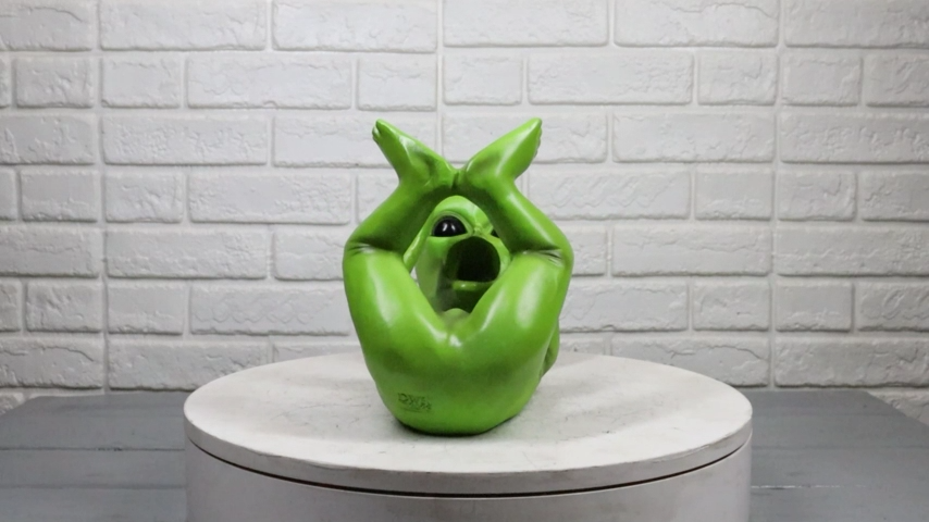 ? This Green UFO Alien ET wine bottle holder is made of designer composite resin, hand painted and polished. Color tone may vary