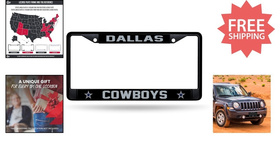 - Eye-Catching Black Chrome NFL Frame 12" x 6" - Perfect for Dallas Cowboys Fans
