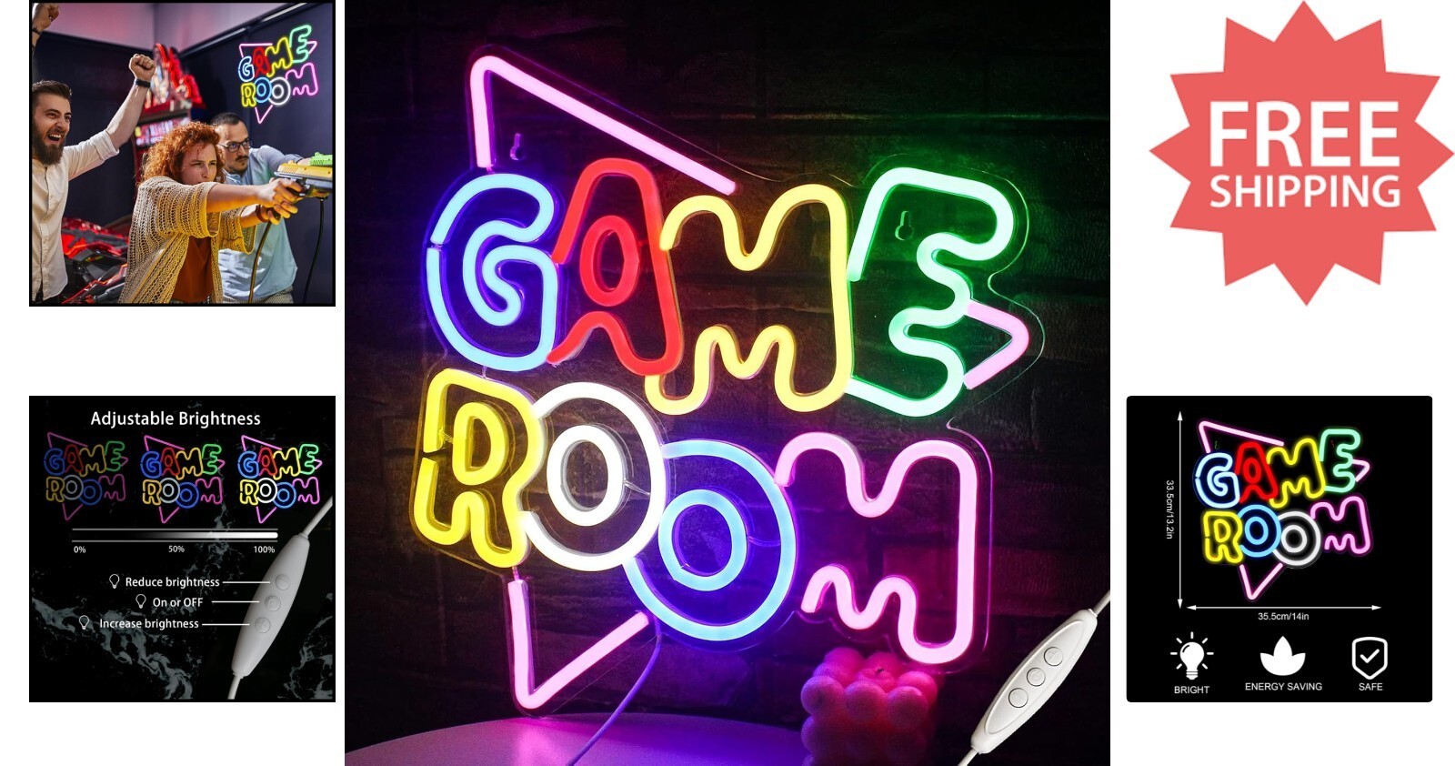 - Eye-Catching Colorful LED Light Up Game Room Sign - 13.2x14