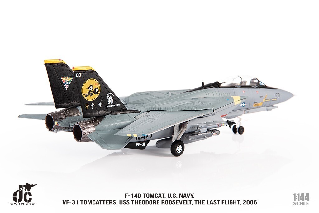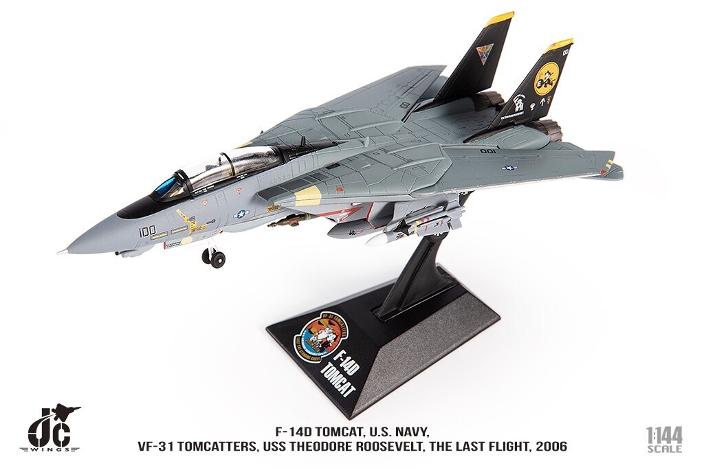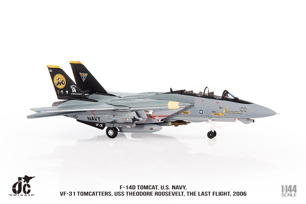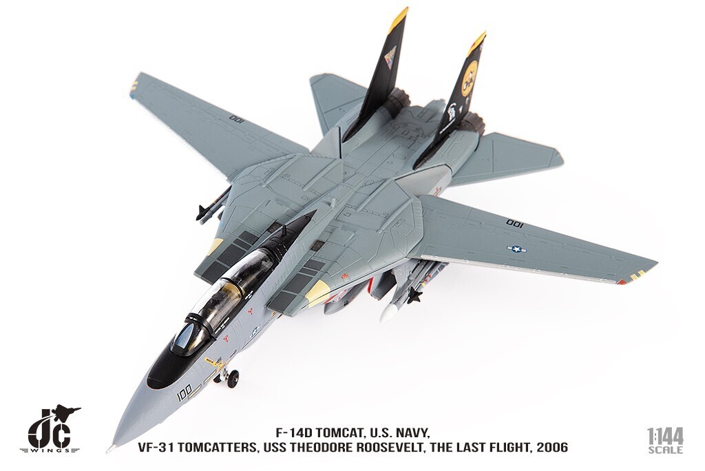 1:144 Scale Diecast Metal ? Grumman F-14D Tomcat VF-31 "Tomcatters" USS Theodore Roosevelt, The Last Flight ? Length: 5.5" Wingspan: 5.25? (wings extended)