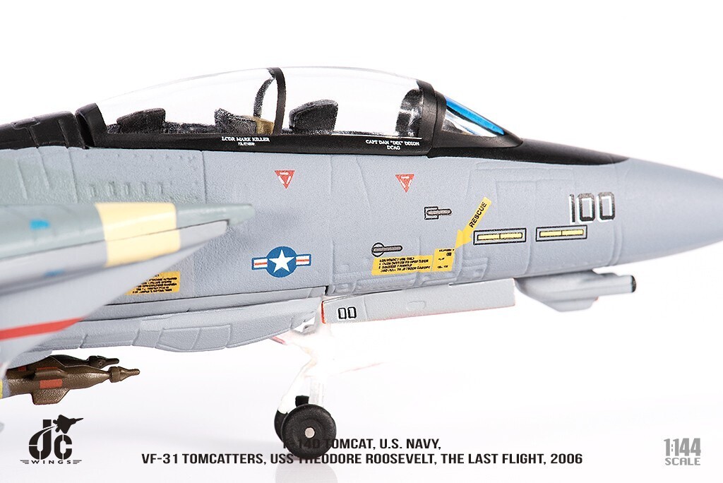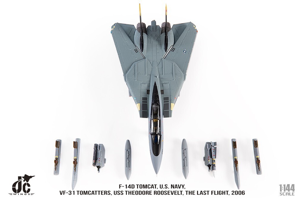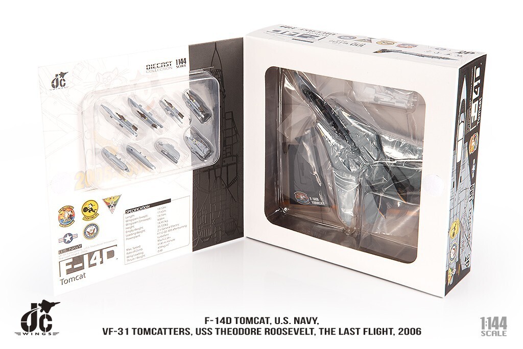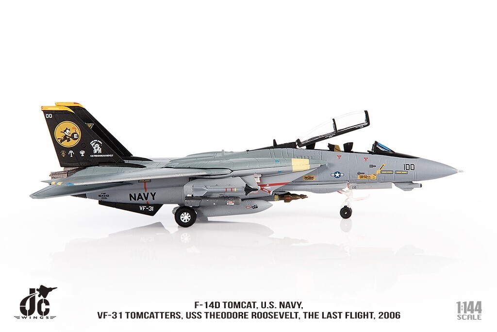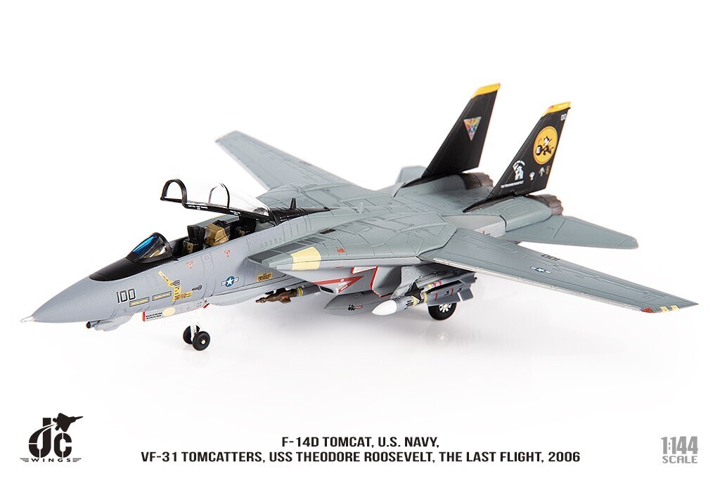 1:144 Scale Diecast Metal ? Grumman F-14D Tomcat VF-31 "Tomcatters" USS Theodore Roosevelt, The Last Flight ? Length: 5.5" Wingspan: 5.25? (wings extended)