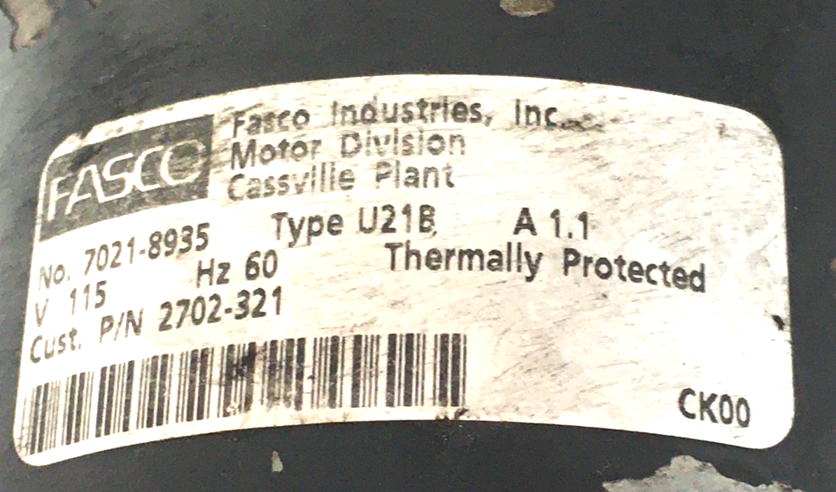 - FASCO 7021-8935 Draft Inducer Blower Motor Assembly 2702-321 115V used #MK177