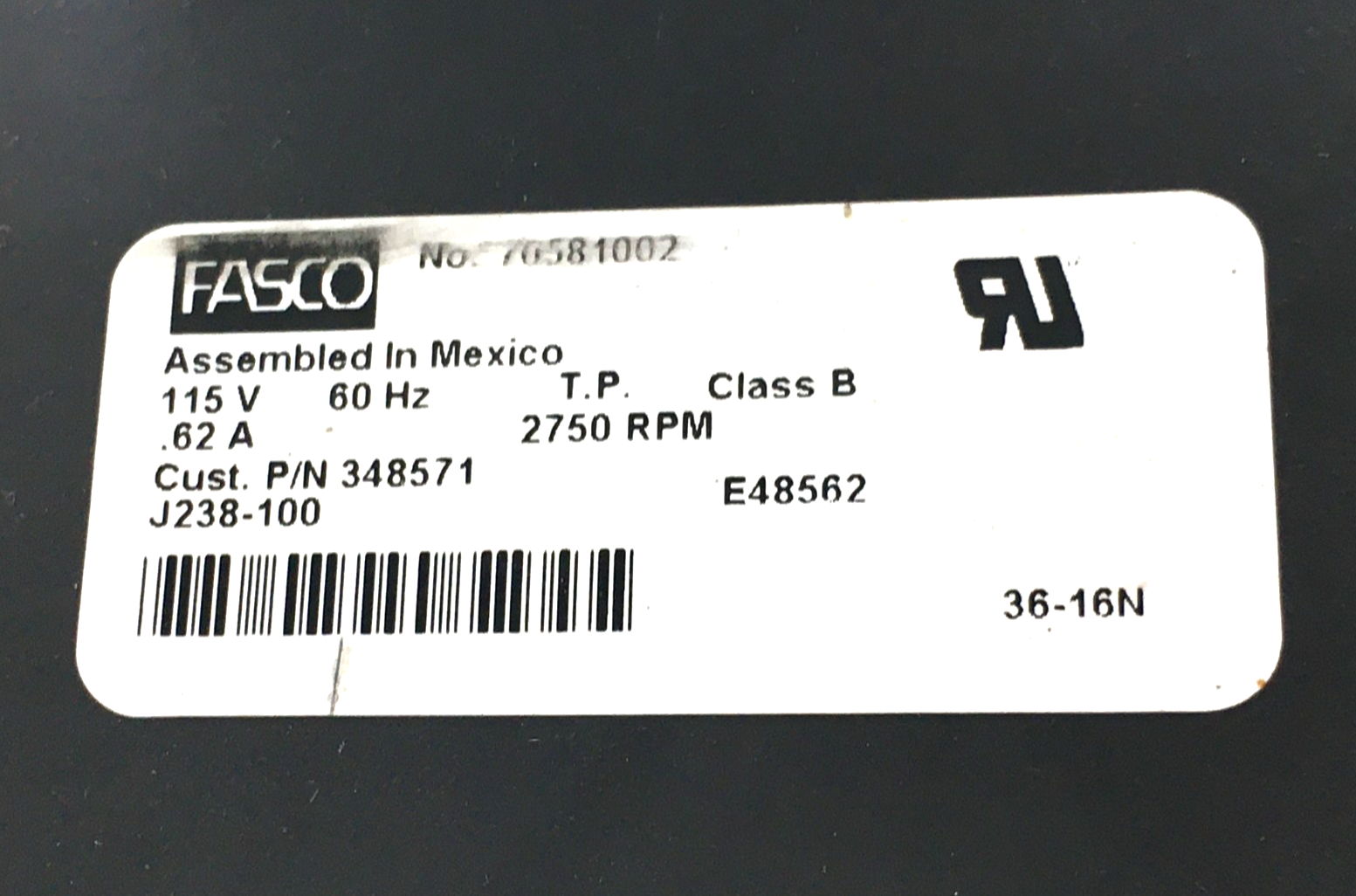 - FASCO 70581002 Draft Inducer Blower Motor 348571 J238-100 115V used #MR490