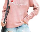 - FASHGL Believe Sweatshirt Women Funny Christmas Hat Graphic Pink Size 2XL