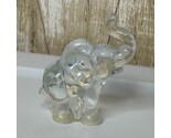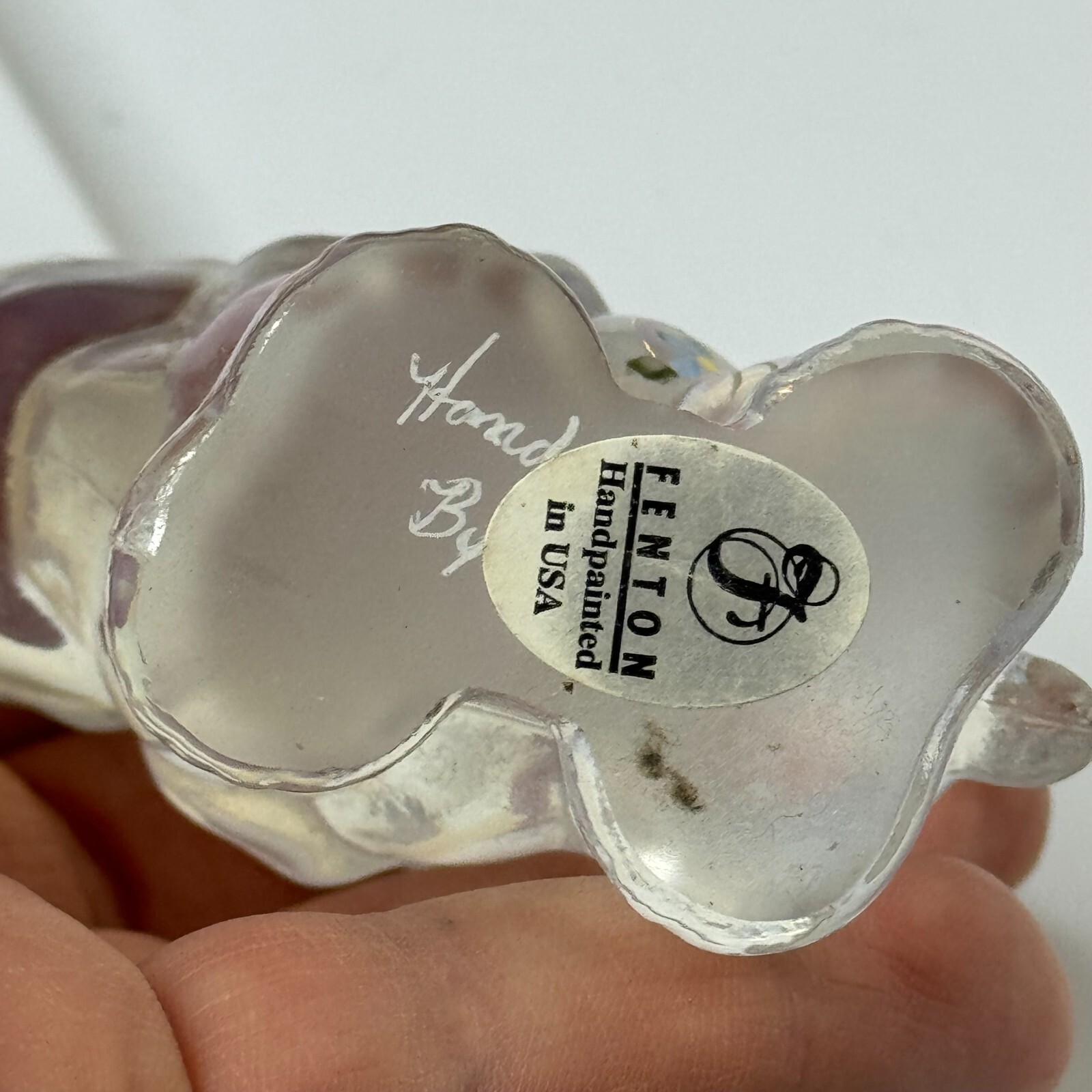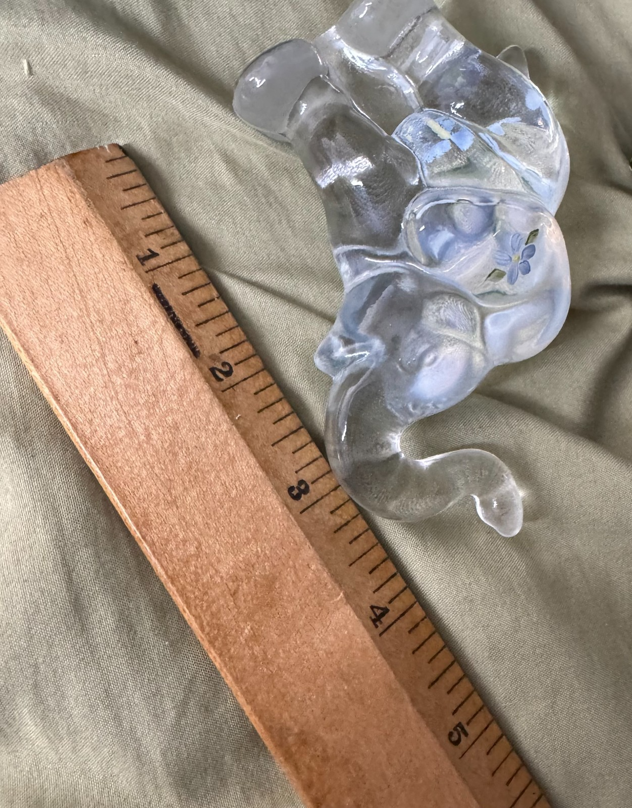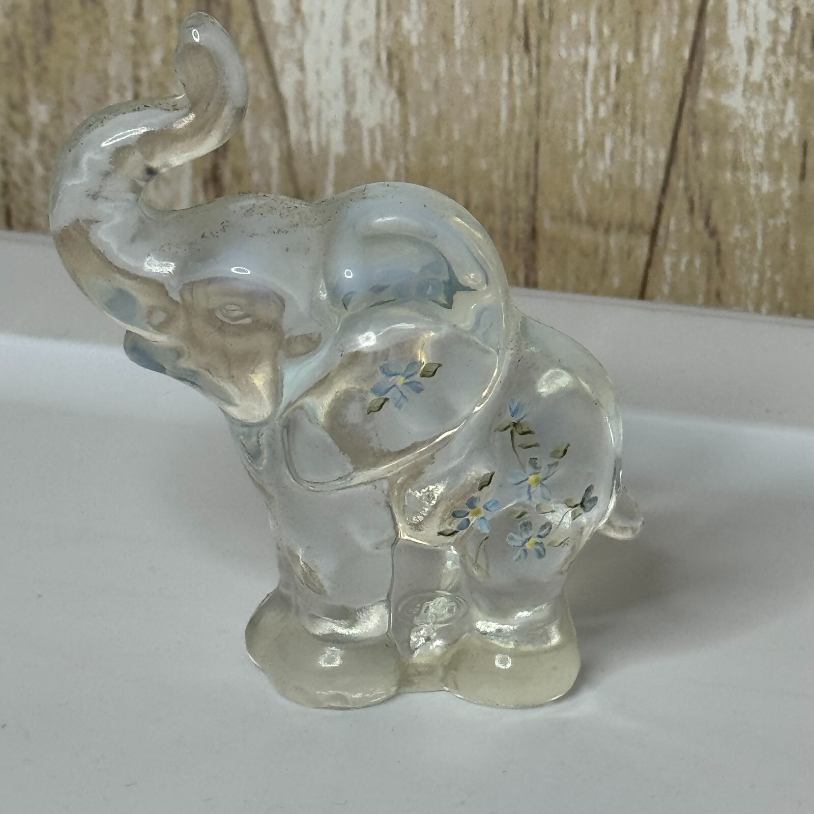 - FENTON Elephant Glass Figurine Signed Clear Hand Painted Flowers ,4" Tall