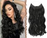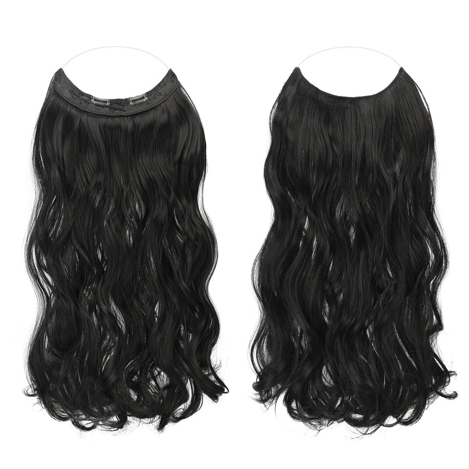 FESHFEN Invisible Wire Hair Extensions 20" Long Wavy Synthetic Black