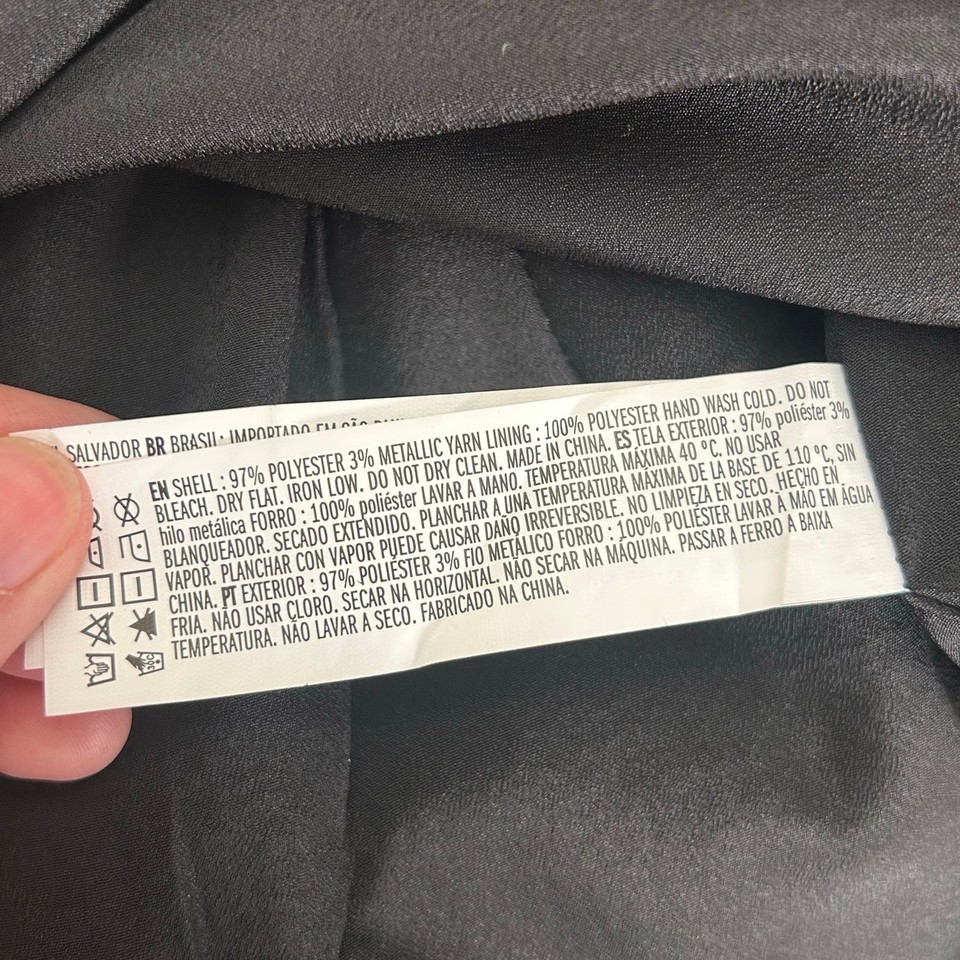 Adjustable straps, zip closure on the back, and ruffles hem.