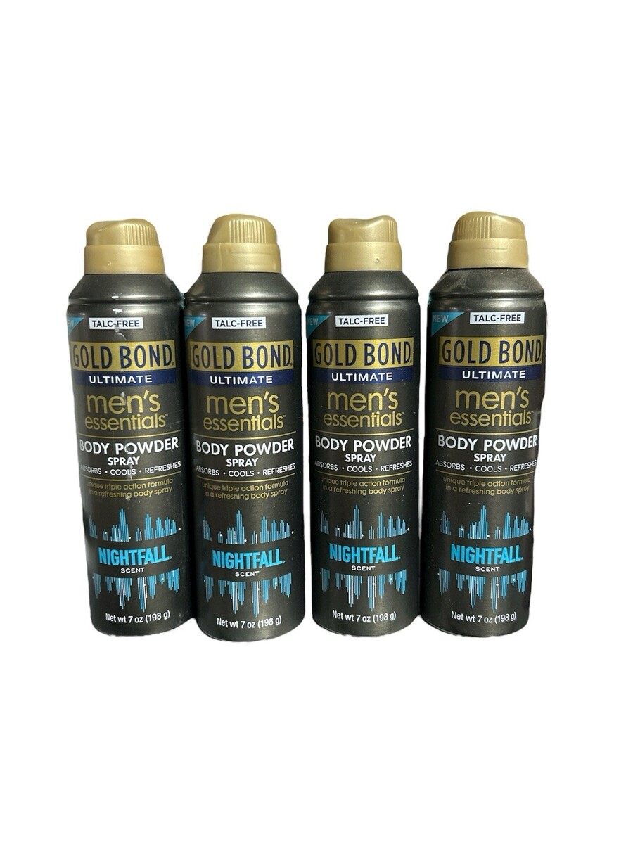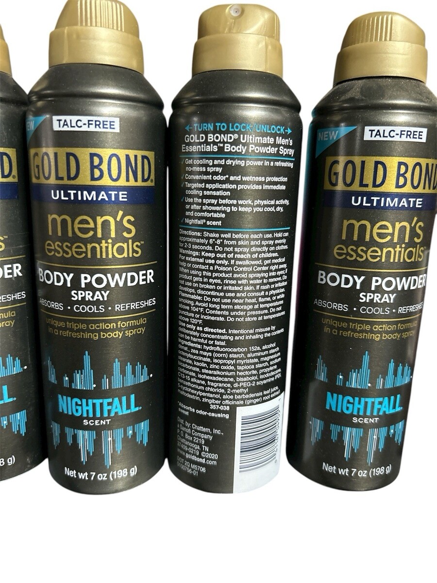 - FOUR Gold Bond Men's Essentials Talc-Free Body Powder Spray 7 oz Nightfall