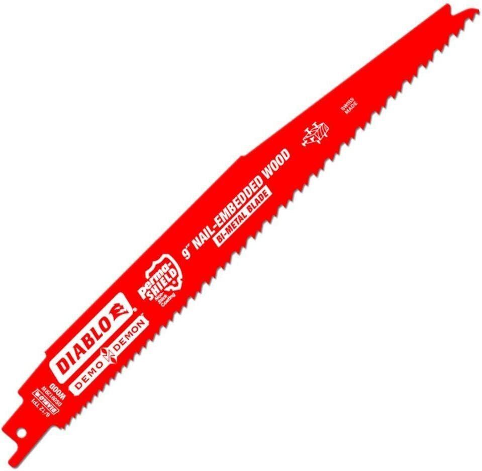 1 in. demolition body for straighter cuts with less vibration Diablo Demo Demon Reciprocating Saw Blades. Leveraging patented variable tooth technology, the 9 in. x 4-6 TPI blades bite into lumber to make quick work of teardowns and demolition projects. Bi-metal construction gives the blades utmost durability and a Perma-SHIELD coating reduces drag for smooth operation in rugged applications.