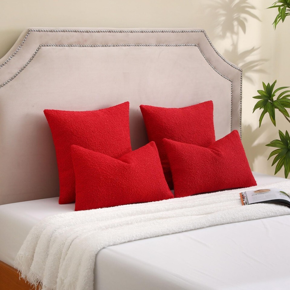 - FUTEI Red Decorative Throw Pillow Covers 22x22 Inch Pack of 2 Soft Boucle