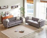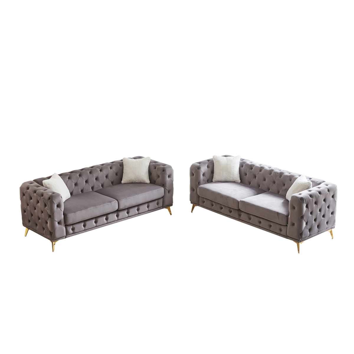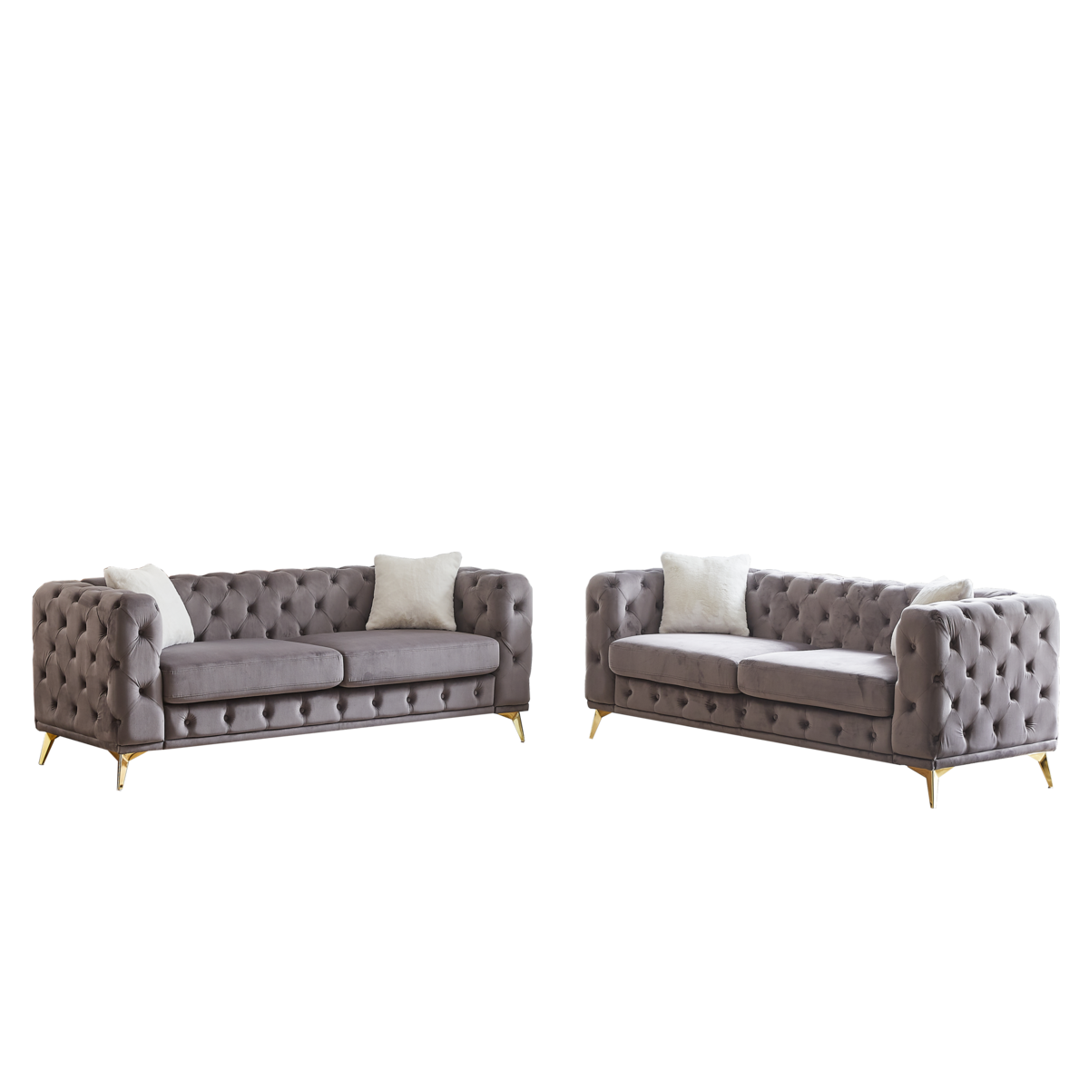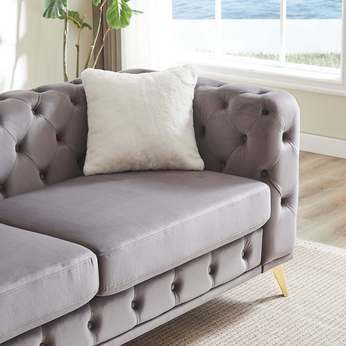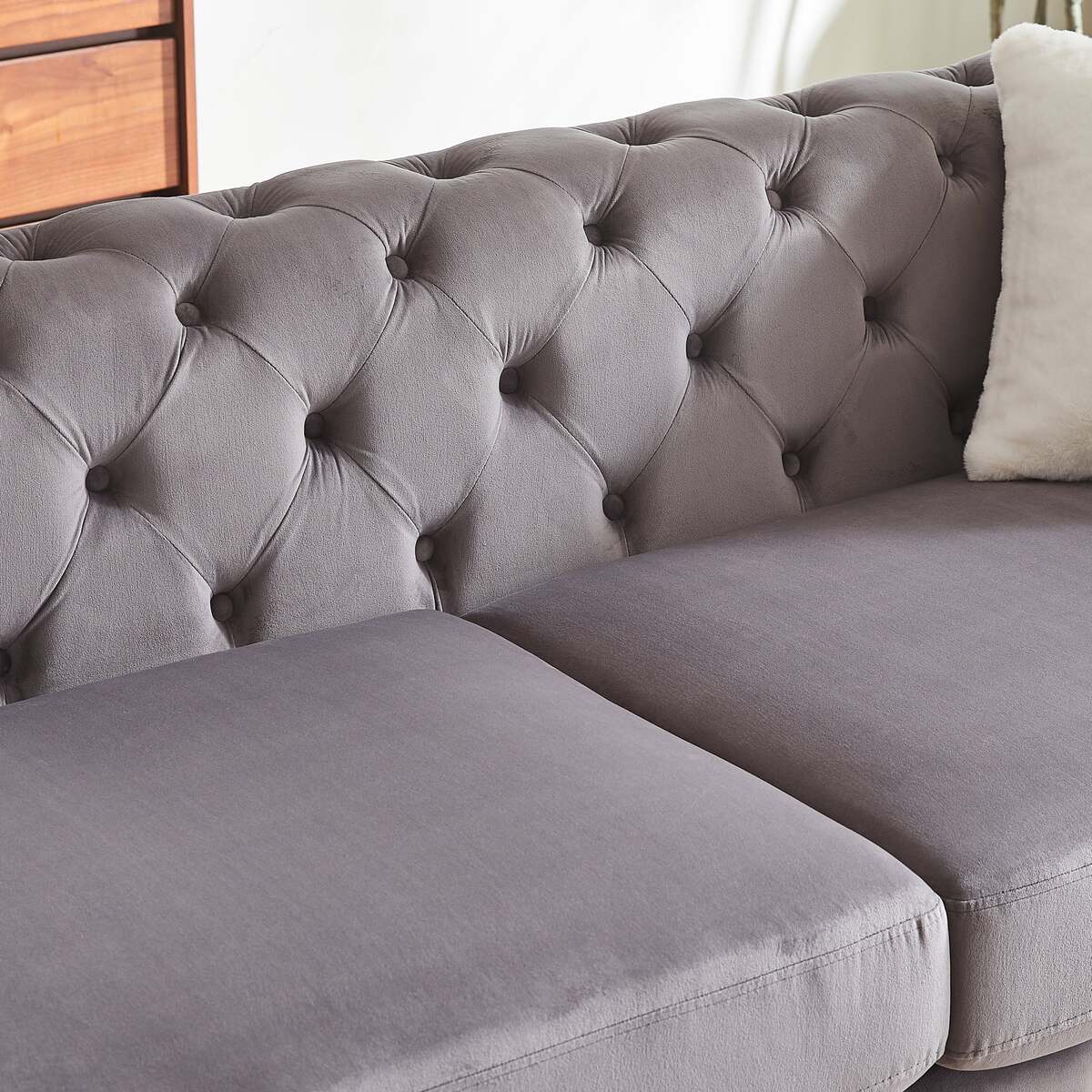 Crafted from a soft velvet fabric with tufted buttons, this sofa adds a soft, cozy touch to any living space!
