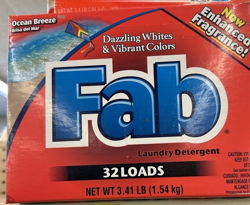 - Fab Ocean Breeze Dazzling Whites Powder Laundry Detergent, 52oz, 32 Loads