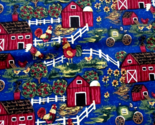 Fabric Red Rooster "Barnyard Banter" Rooster Cow Red Barn Sunflowers $5.50