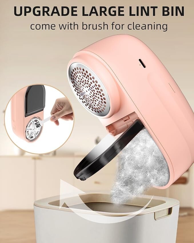 ?LARGE GARBAGE BIN? Compared with other fabric shaver devices, our sweater defuzzer have larger trash storage bin, so no need to worry about the lint shaver can't work normally because of garbage backflow and blockage.