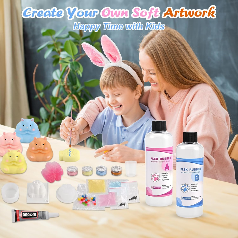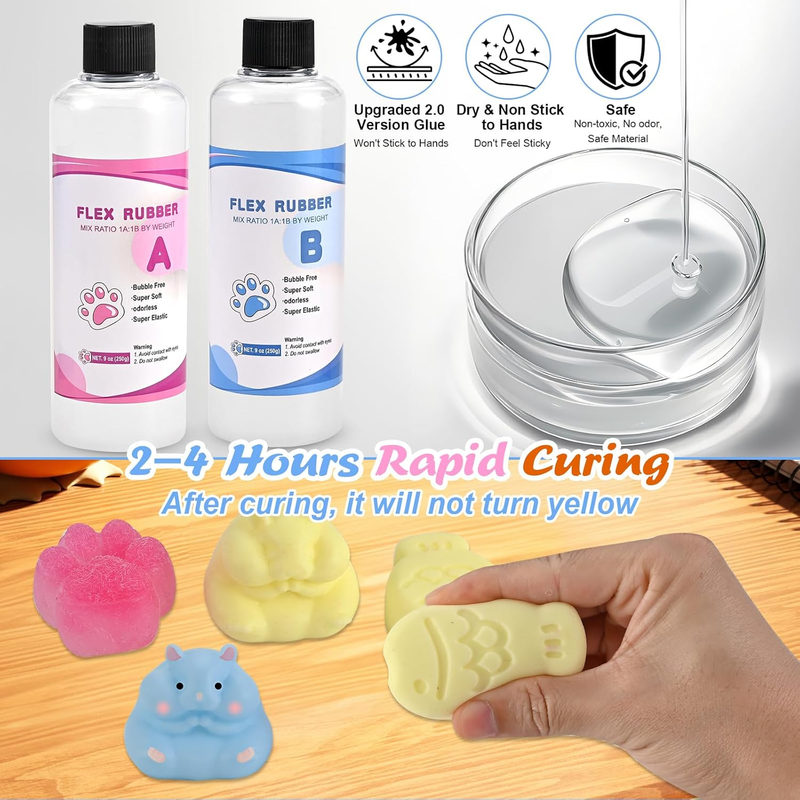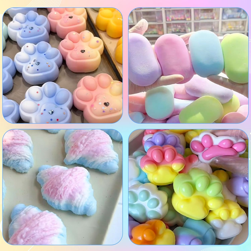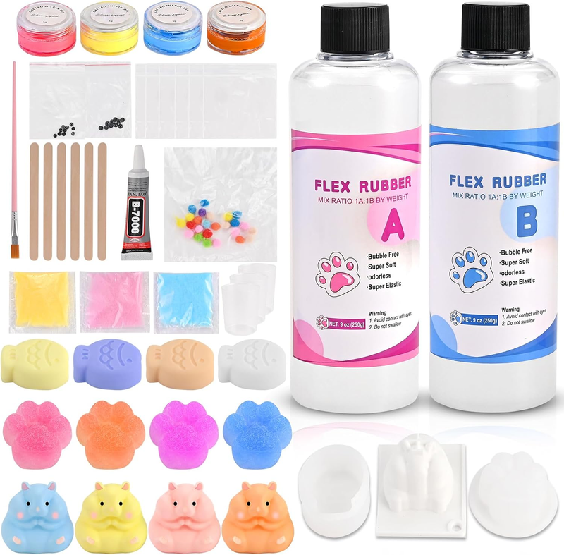 ?Upgraded Silicone Formula - Softer, Safer, Smarter?--Experience 3-level squishy gel A and B engineered for perfection: Cloud-like softness that mimics real taba squishy paw texture. Low-viscosity for smooth pouring and easy demolding. Tear-resistant flex rubber ensures durable silicone squishy creations.Tested non-toxic and odorless for worry-free DIY squishy making kits.