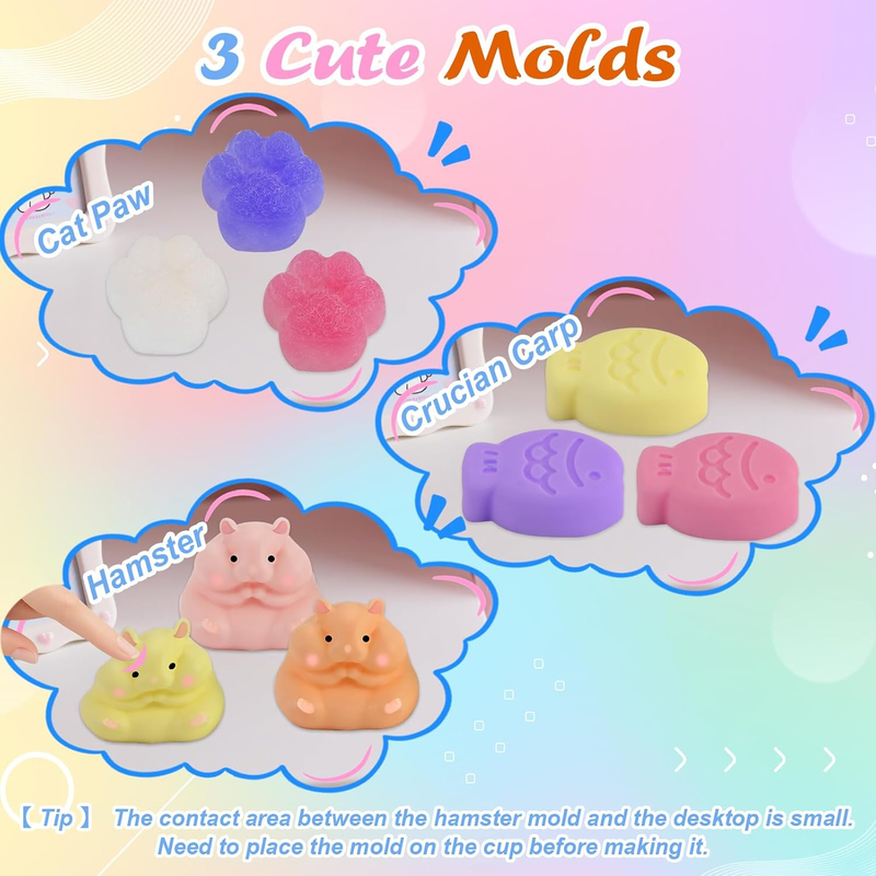 ?Unbeatable Stress Relief?--Discover why make your own squishies is our favorite therapy. Press cat paw squishy to melt work tension. Squish the taba squishy hamster for instant focus boost. Share handmade taba squishies to spark joy with loved ones. The slow-rising squishy gel delivers deep tactile satisfaction, proven to ease restlessness!