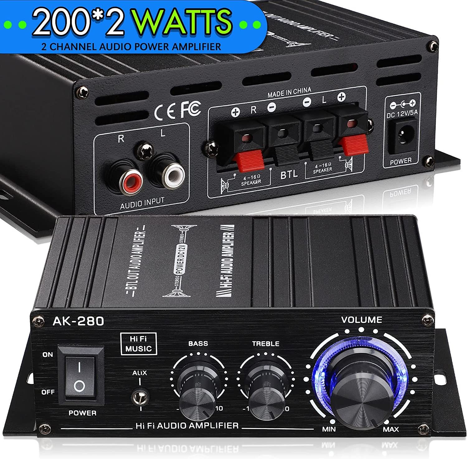 - Facmogu Ak280 200W Mini 2.0 Ch Audio Power Amplifier, Bass And Treble Control