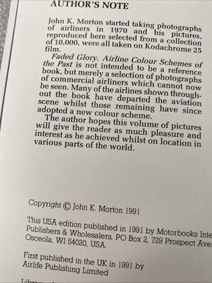 - Faded Glory Airline Colour Schemes of the Past John K. Morton Paperback