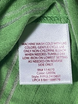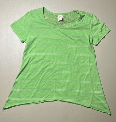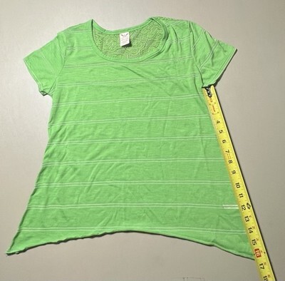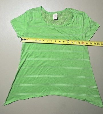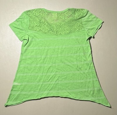 Faded Glory SS Top Women’s M (8-10) Green W/ Stripes And Lace Upper Back