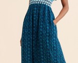 Faherty Gracie Linen Maxi Dress In Blue Bali Bloom $298, Sz L, NWT!