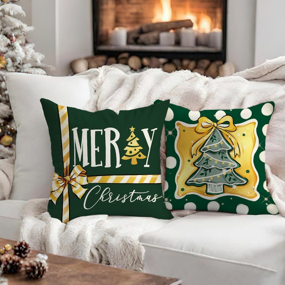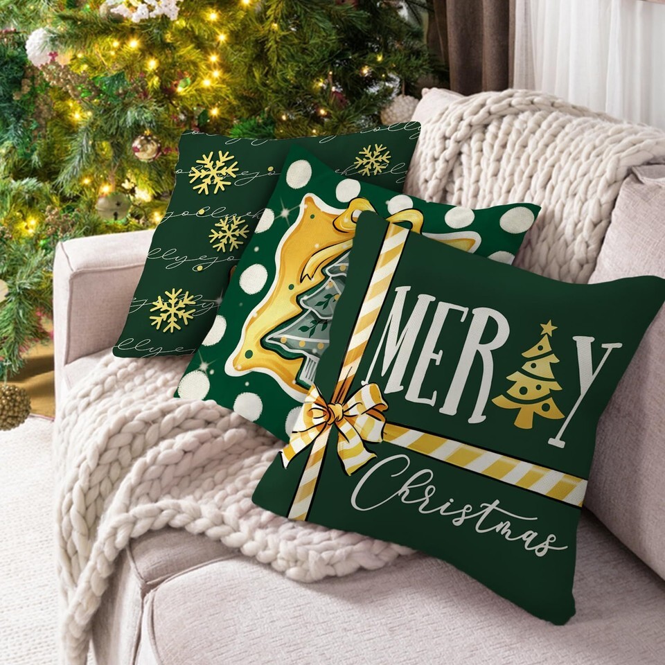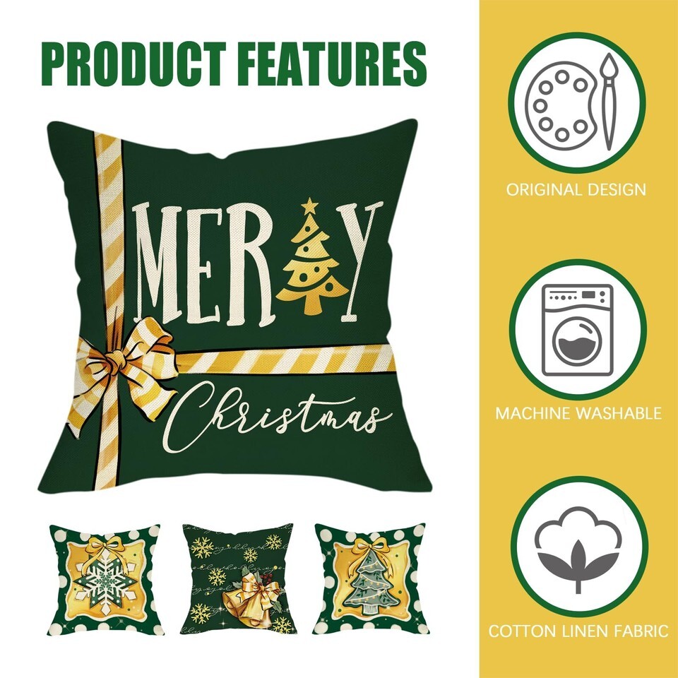 Attractive Design: This Christmas series of 4-piece pillowcase is designed with Christmas tree, Xmas ball, snowflake, jingle bell. These pillowcases are also printed with words such as Merry Christmas, let's get baked. They are very suitable for decorating the inside of your room in the winter and also perfect for decorating outside the house such as courtyard porches