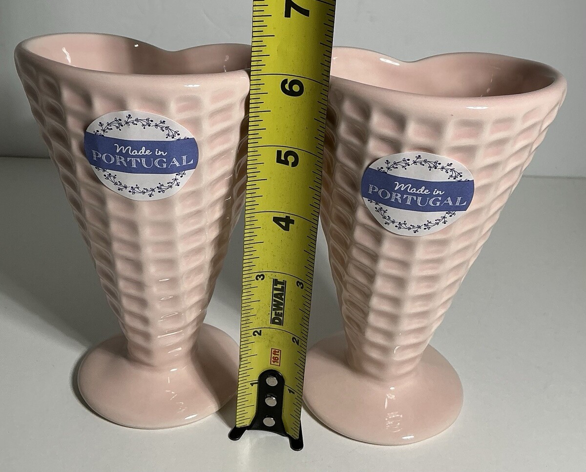- Faiancas Ramos 2 Ceramic ice cream bowls shaped like waffle cones PINK New