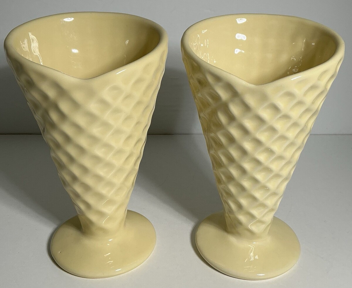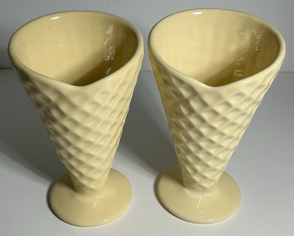 - Faiancas Ramos 2 Ceramic ice cream bowls shaped like waffle cones Yellow New
