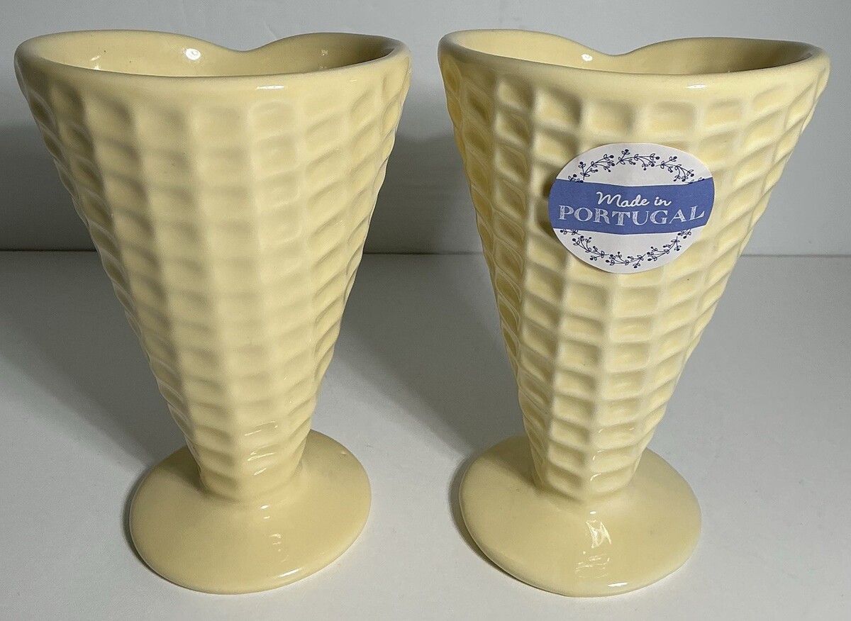 Faiancas Ramos 2 Ceramic ice cream bowls shaped like waffle cones Yellow New