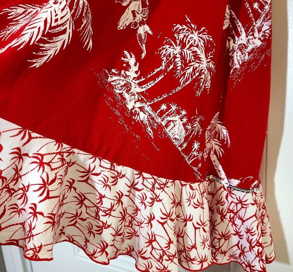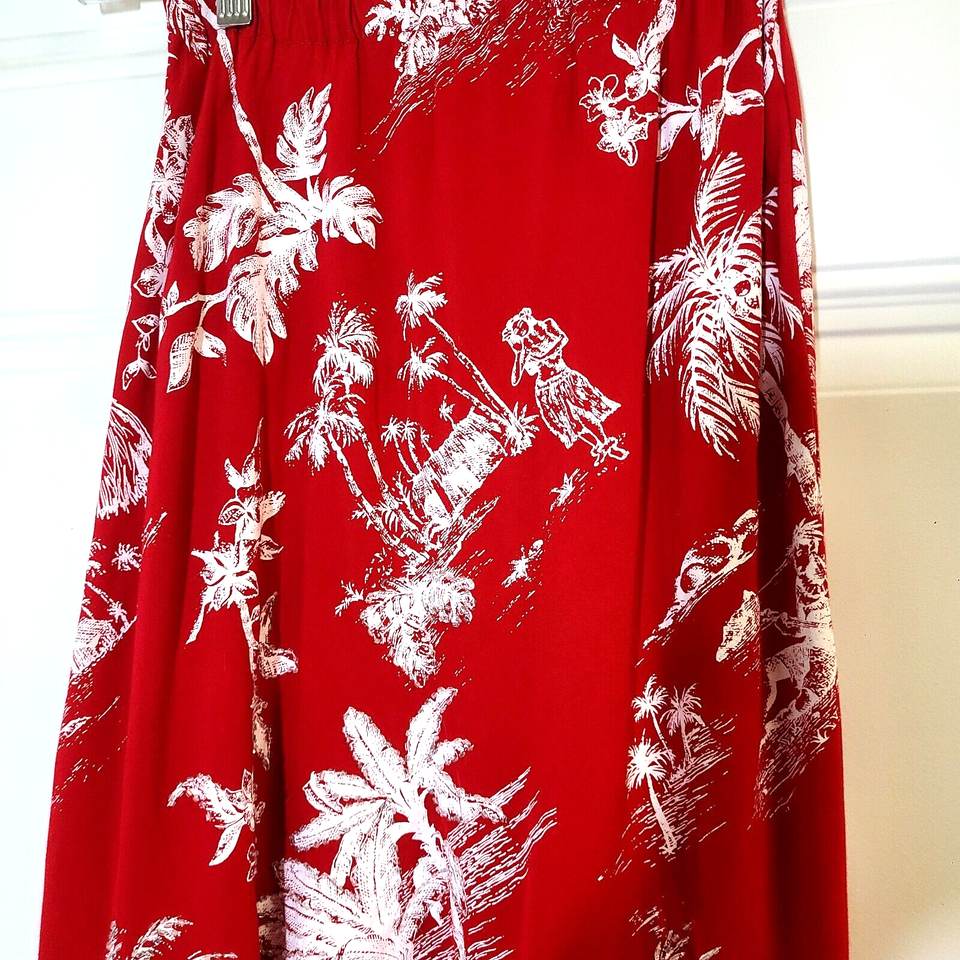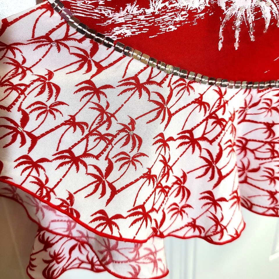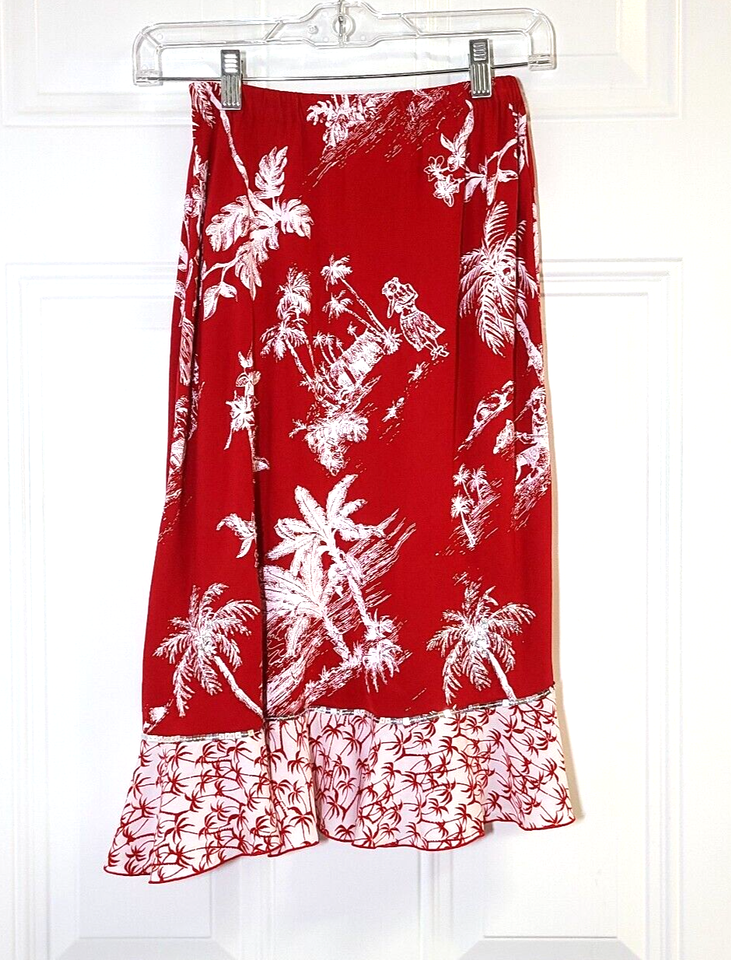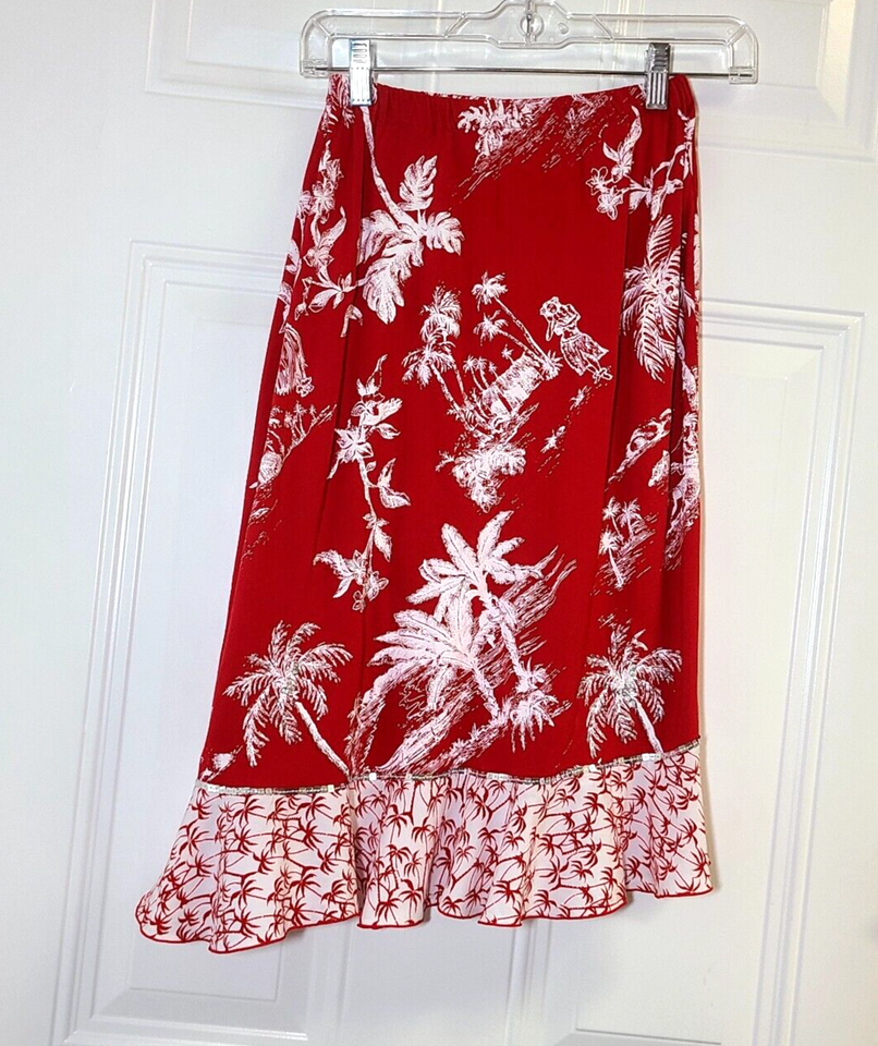 - Faith Resort Wear Tropical Skirt Embellished Palm Trees Hula Girl Red White XS