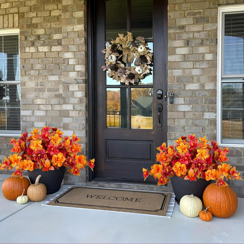 Versatile Decor Options: Ideal for various settings, our fake faux fall flowers for outdoor planters complement any autumn decor theme, adding a touch of elegance and charm to your home