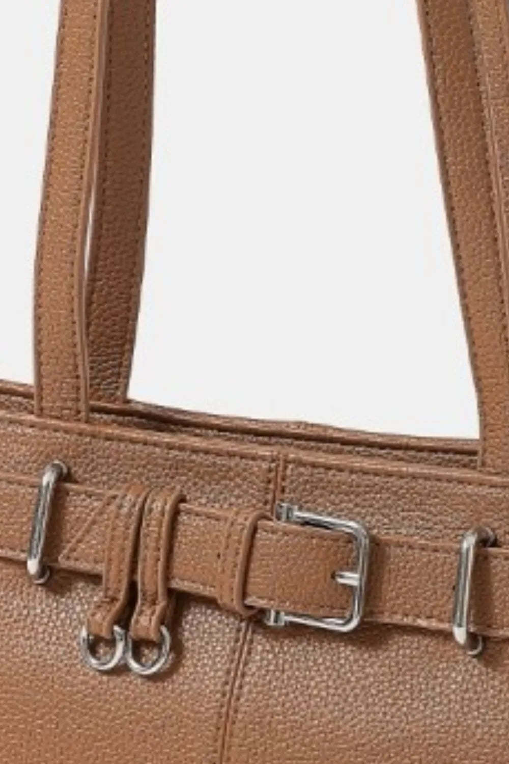 - Fame Belt Strap Textured Faux Leather Shoulder Bag