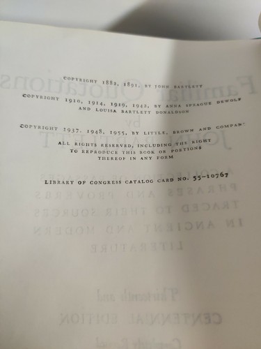 - Familiar Quotations by John Bartlett, 1955, 13th Edition, Hardcover, 1614 pages