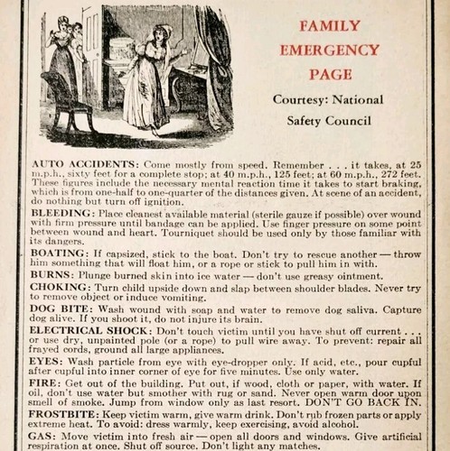 Family Emergency Page 1965 Almanac Health First Aid Safety Ephemera DWNN4