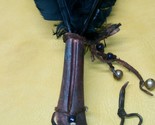 turkey feather and deer leg smudging fan . dyed black turkey feather . embedded in a deer leg bone. decorated with deer buckskin and hawk bells, black glass crow beads. Has a nice curved for faning. powwow black powder reenactment. Condition is "New". Shipped with USPS First Class.